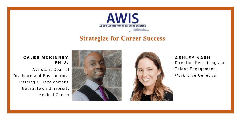 When it comes to navigating career growth in science, many feel as though they are entering uncharted waters in a ship with no sail. For women in science, there can be even more challenges. The Association for Women in Science (AWIS) sought out to help calm the seas at the ‘Strategies for Career Success’ panel discussion with expert advice from Caleb McKinney, PhD, Assistant Dean of Graduate and Postdoctoral Training & Development at Georgetown University and Ashley Nash, Director of Recruiting and Talent Engagement at Workforce Genetics.